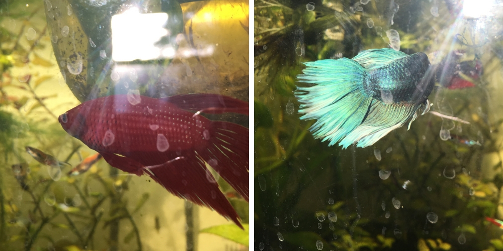 The atmosphere in the room is fun and distinctly techie. There are three desktop gaming PCs, four monitors, a giant fish tank, several small tanks, and a turtle tub.