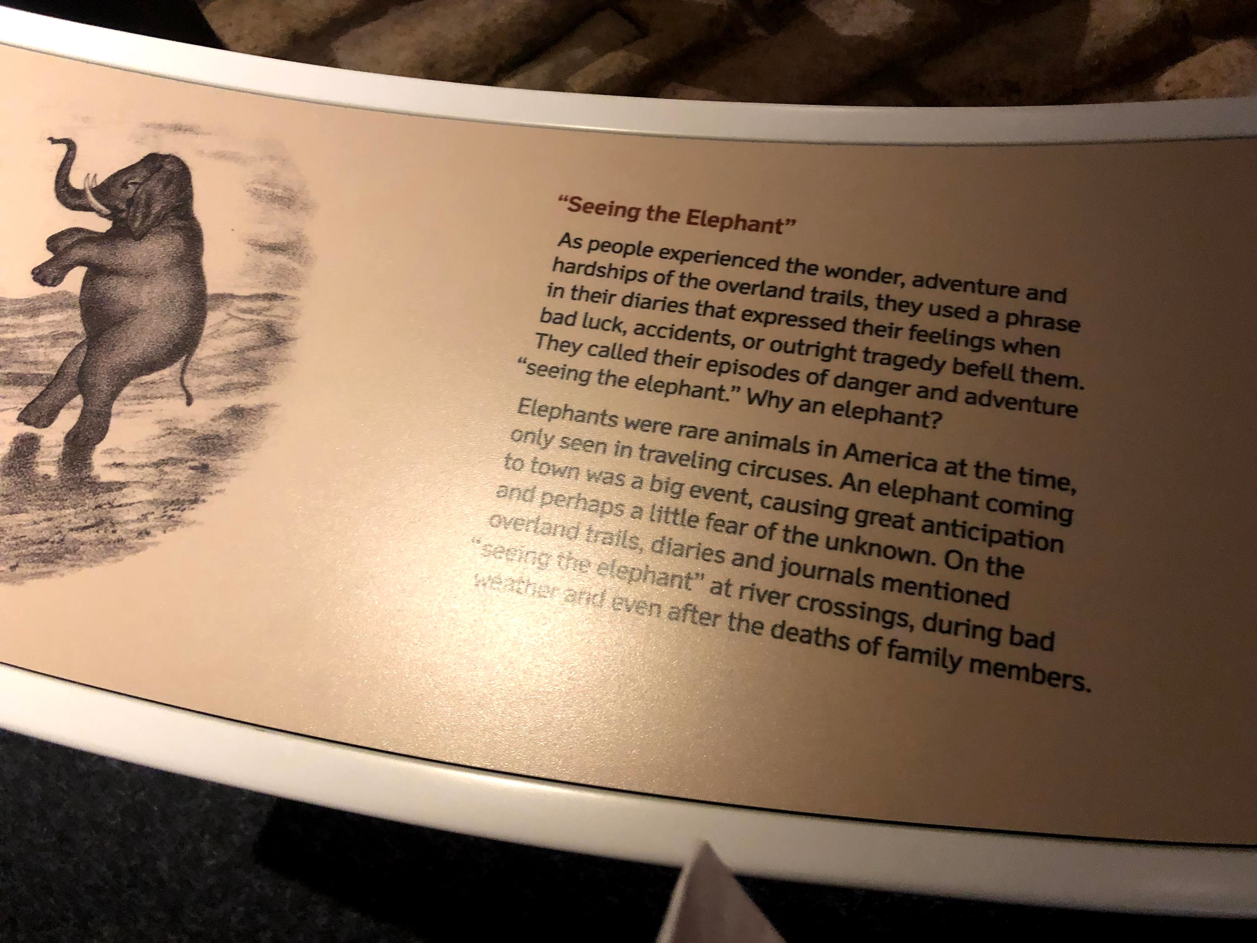 As people experienced the wonder, adventure and hardships of the overland trails, they used a phrase in their diaries that expressed their feelings when bad luck, accidents, or outright tragedy befell them. They called their episodes of danger and adventure “seeing the elephant.” Why an elephant?