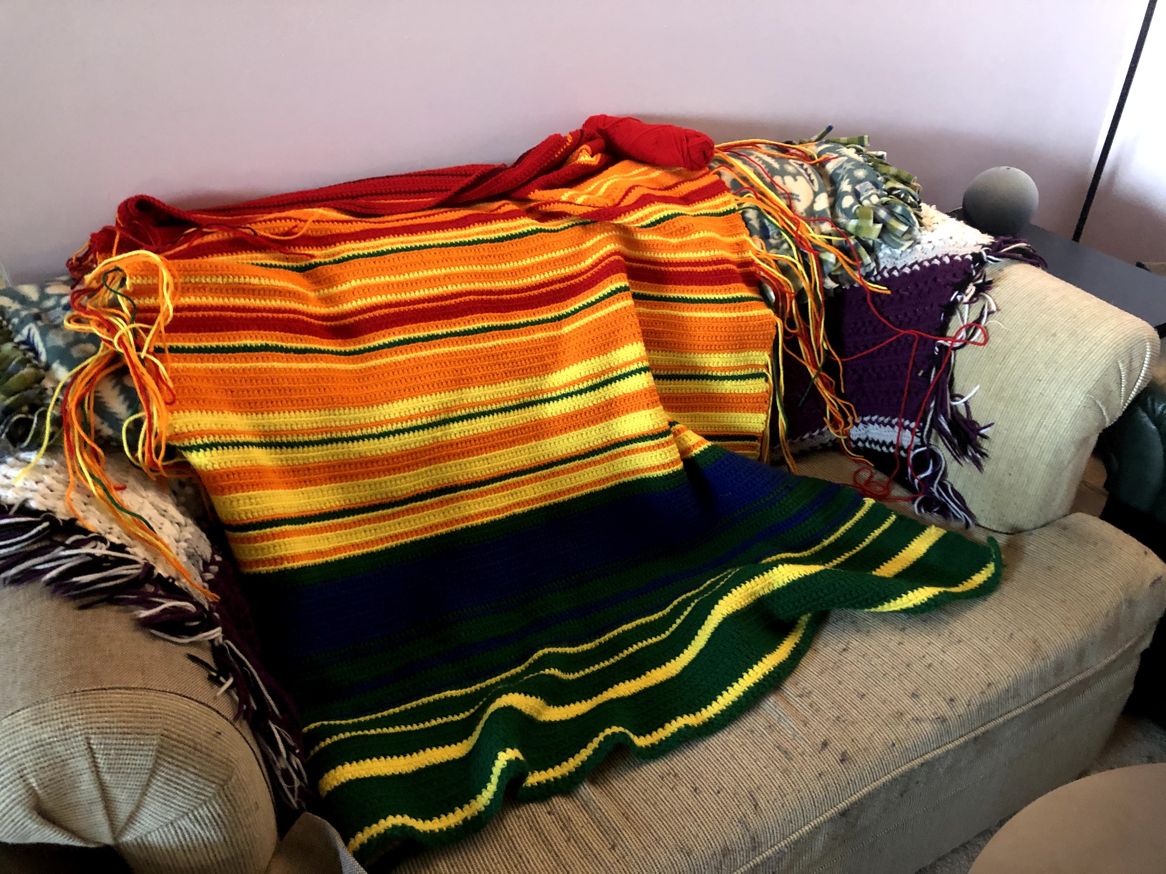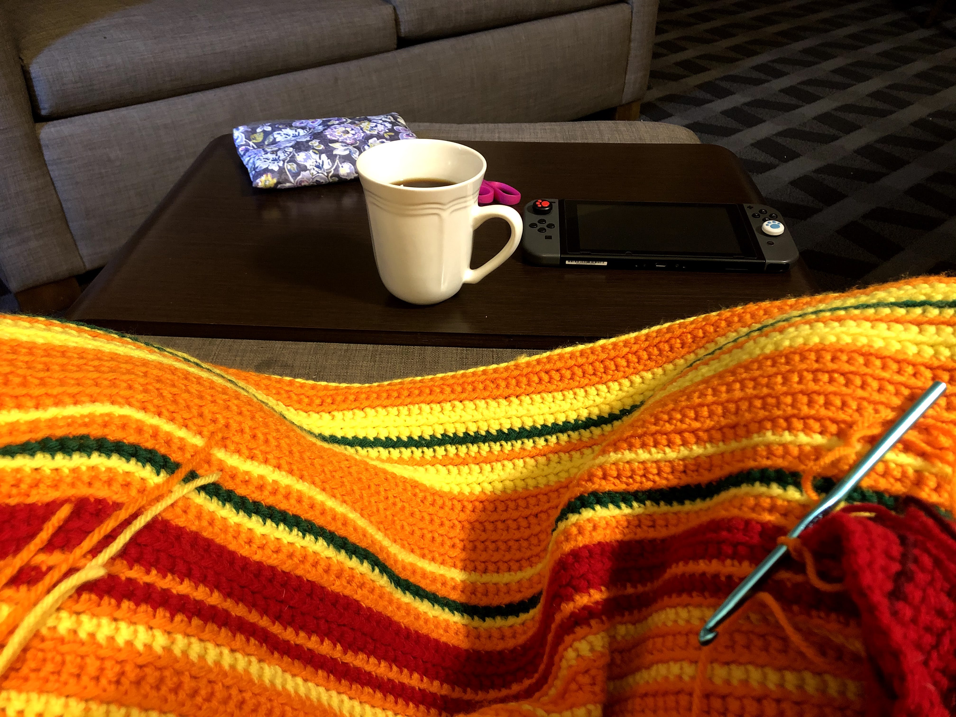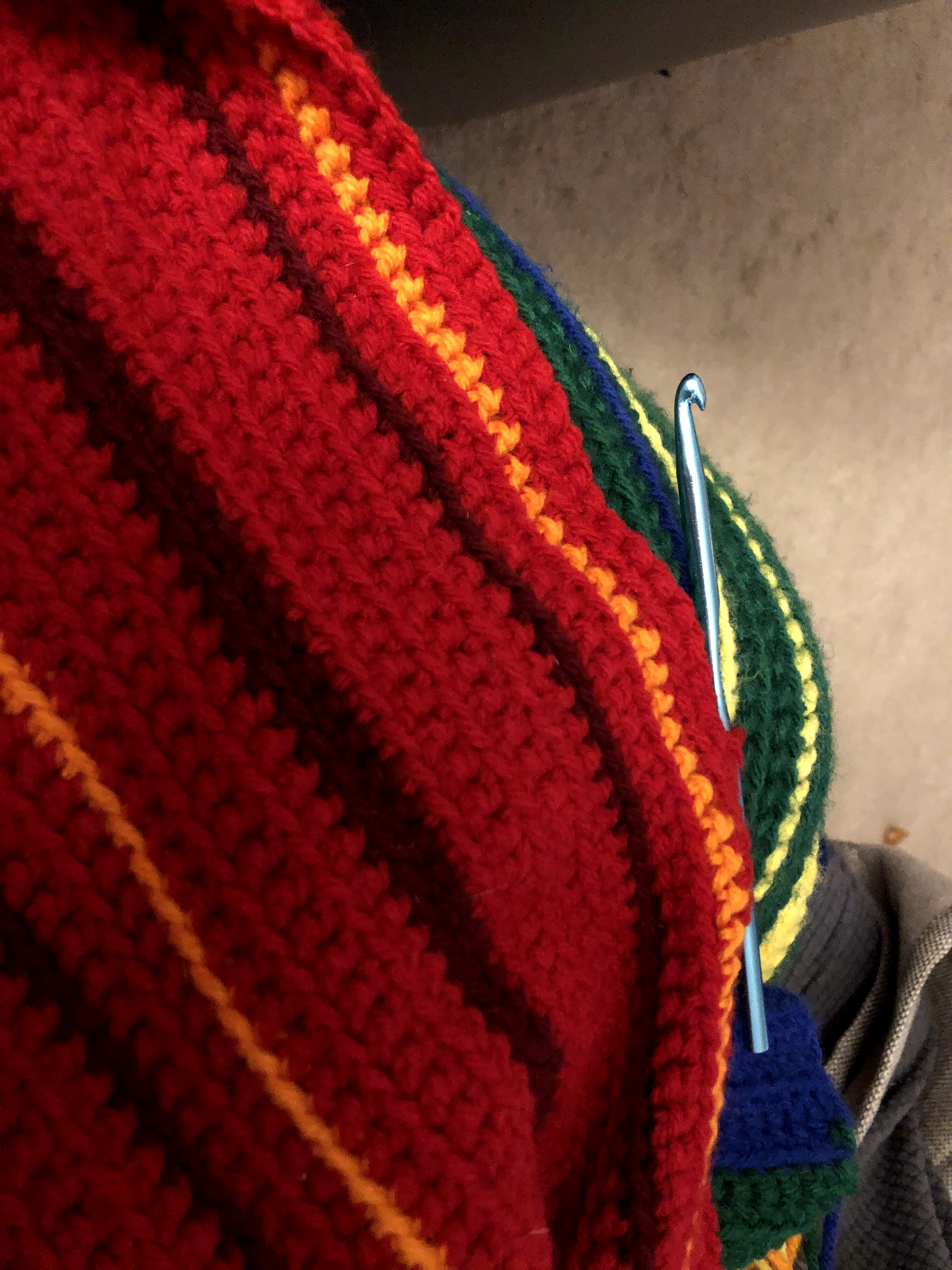 I am proud of this thing. It’s definitely not as wide as I wanted it to be, but I don’t think I’ll be using it as an actual blanket anyway. I’m going to place it as a decorative piece on the back of the couch in my living room – an artifact of 2021, the hardest year of my life.