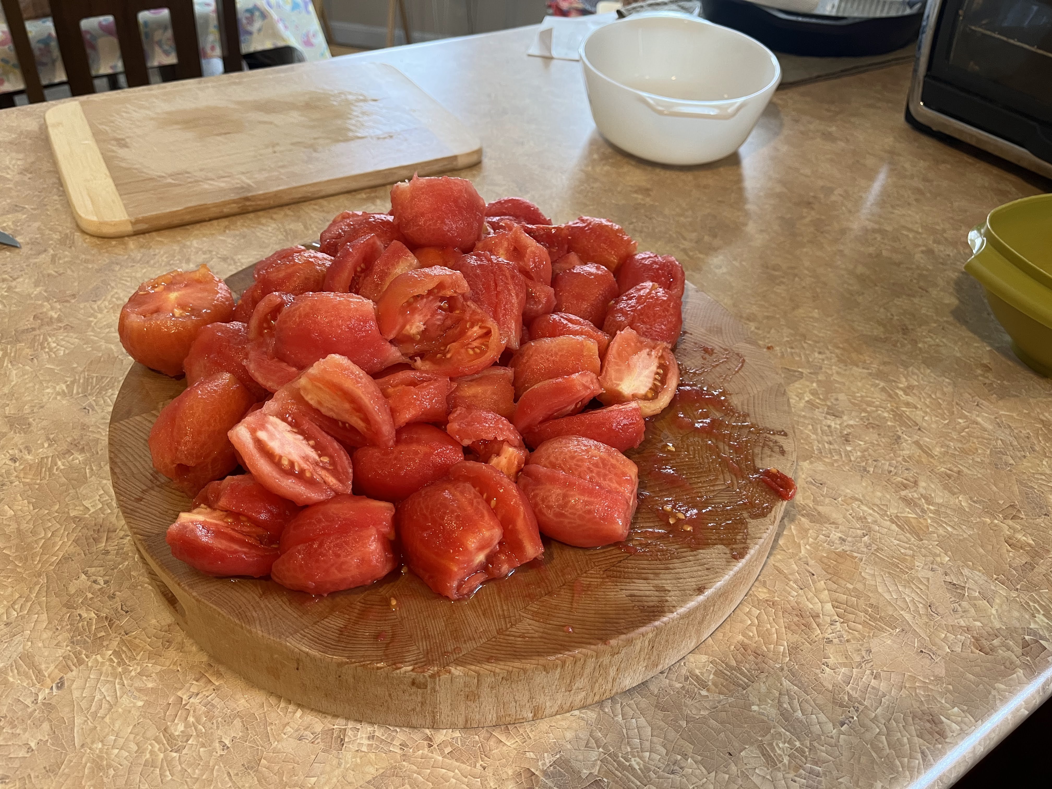 So, a couple weekends ago, I spent a day with my mom learning how to water bath can some pizza sauce. It was a great excuse to spend time with my mama, for one thing. For another, it was an incredible learning experience that I will certainly need to repeat a few times to get the hang of it. Not sure yet if the roma plant will produce enough for a second round of canning, but there is always next year!